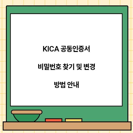 이 글에서는 KICA 공동인증서 비밀번호 찾기 및 변경 방법을 설명하며, 비밀번호를 잊어버린 경우에도 쉽게 접근할 수 있도록 도움을 드립니다. KICA ...