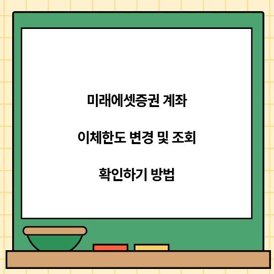 미래에셋증권의 계좌 이체한도를 변경하고 확인하는 방법을 단계별로 알아보겠습니다. 이 글에서는 간단하고 실용적인 방법을 통해 보다 쉽고 편리하게 이체한도를 조정하는 포괄적인 ...