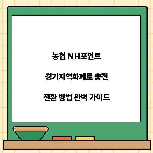 농협 NH포인트를 경기지역화폐로 전환하는 법을 알아보세요! 쉽고 간단한 단계로 여러분의 NH포인트를 유용하게 활용할 수 있는 방법을 제시합니다. 농협 NH포인트 경기지역화폐로 ...