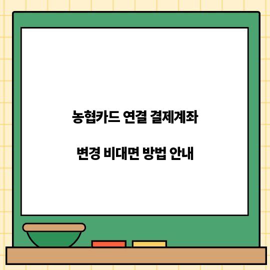 농협카드 연결 결제계좌 변경 비대면 방법은 빠르고 간편하게 처리할 수 있는 절차입니다. 이 안내를 통해 어려움 없이 원하는 계좌로 변경해보세요! ...