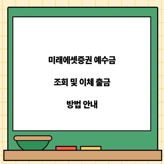 미래에셋증권 예수금 조회와 이체 출금 방법을 통해 안전하고 간편하게 자산 관리하세요. 이 가이드는 여러분이 필요한 모든 정보를 제공합니다. 예수금 조회란? ...
