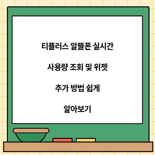 티플러스 알뜰폰의 실시간 사용량을 쉽게 확인하고, 위젯을 추가하는 방법을 상세히 소개합니다. 이 가이드를 통해 사용량 체크를 손쉽게 해결해 보세요! 1. ...