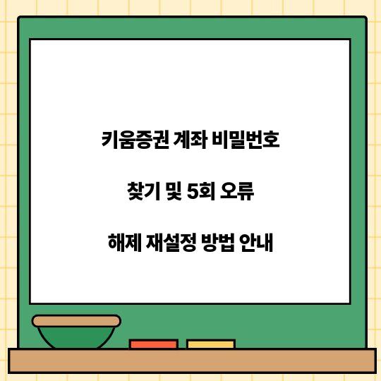 키움증권 계좌 비밀번호 찾기 및 5회 오류 해제 재설정 방법에 대한 정보를 친절하게 안내합니다. 계좌 관리와 비밀번호 재설정의 과정은 간단하나, ...