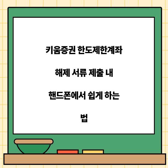 키움증권 한도제한계좌 해제 서류 제출 과정을 스마트폰을 통해 쉽고 빠르게 하는 방법을 알아봅니다. 간단한 단계로 필요한 서류를 제출하여 계좌의 한도를 ...