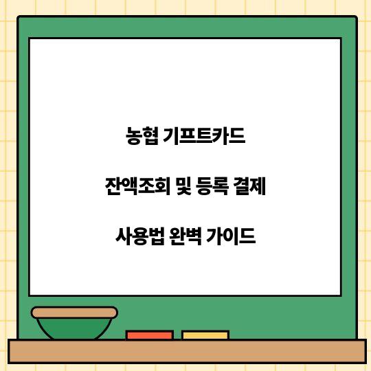 이 글은 농협 기프트카드의 잔액조회, 등록, 결제 사용법에 대한 모든 정보를 다룹니다. 간단하고 실용적인 가이드를 통해 모든 질문에 답합니다! 농협 ...