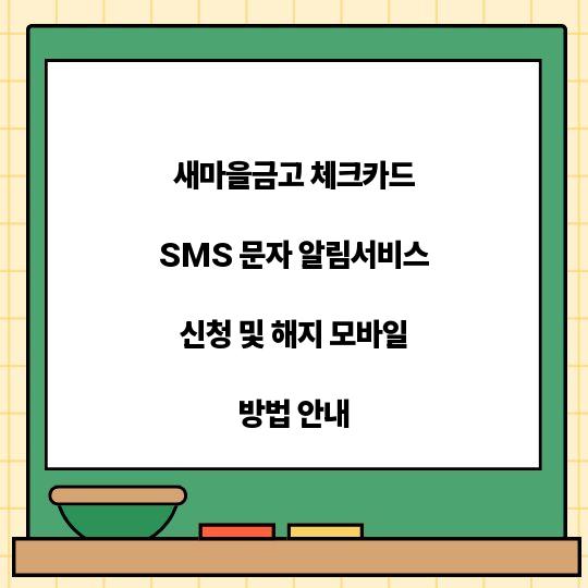 새마을금고 체크카드 SMS 문자 알림서비스 신청 및 해지 모바일 방법을 자세히 알아보아요. 간편한 신청과 해지 방법을 통해 여러분의 카드 사용을 ...