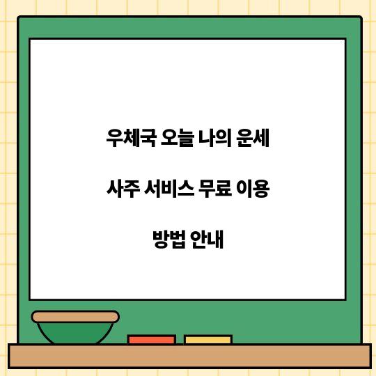 오늘의 운세를 알고 싶은 이들에게! 우체국에서 제공하는 무료 사주 서비스 이용 방법을 자세히 안내합니다. 지금 바로 나의 운세를 확인해 보세요! ...