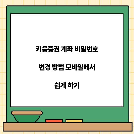 키움증권 계좌 비밀번호 변경 방법 모바일에서 쉽게 할 수 있는 방법에 대해 알아보세요. 이 글에서는 단계별로 간단히 설명드리며, 함께 궁금한 ...